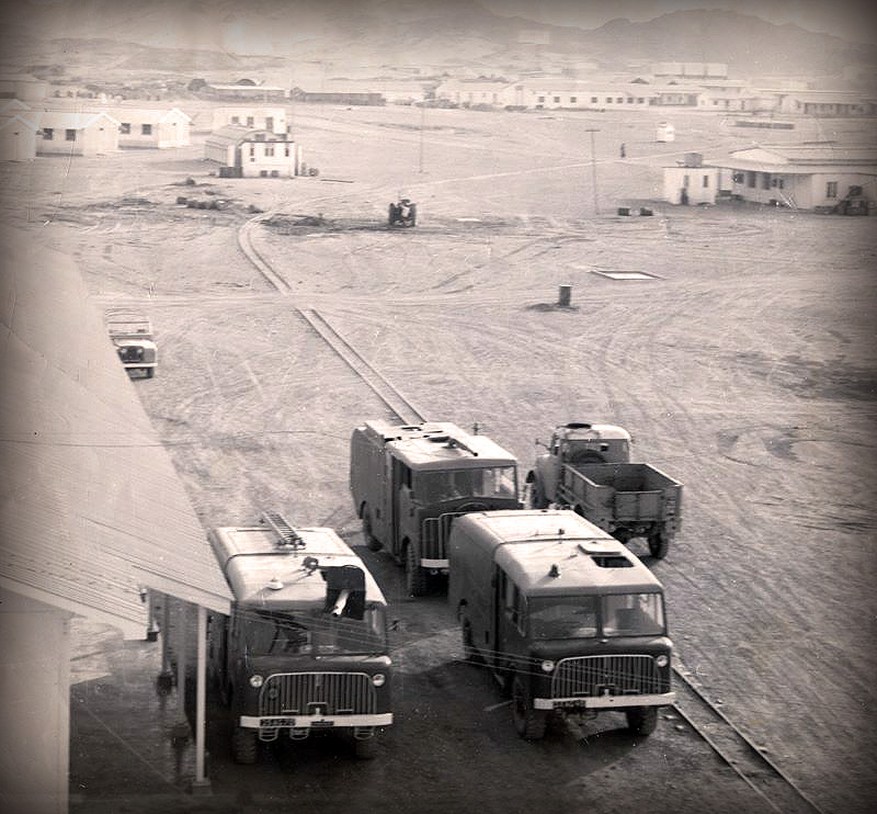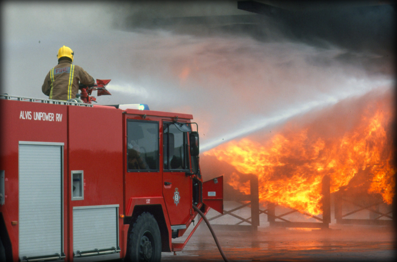 Wool fibre crash firefighting suits and white crash boots. In those days