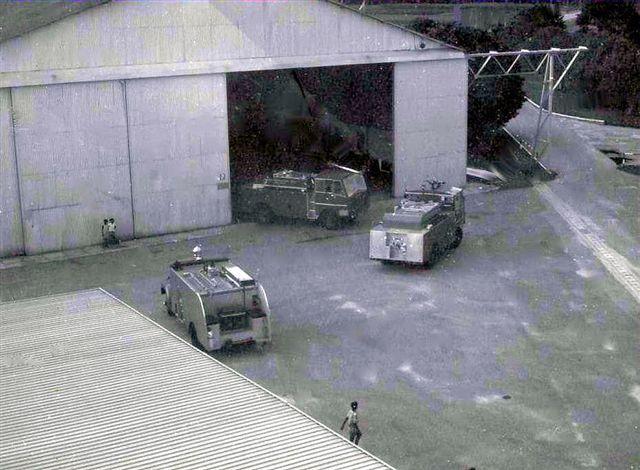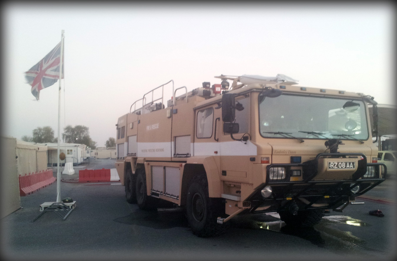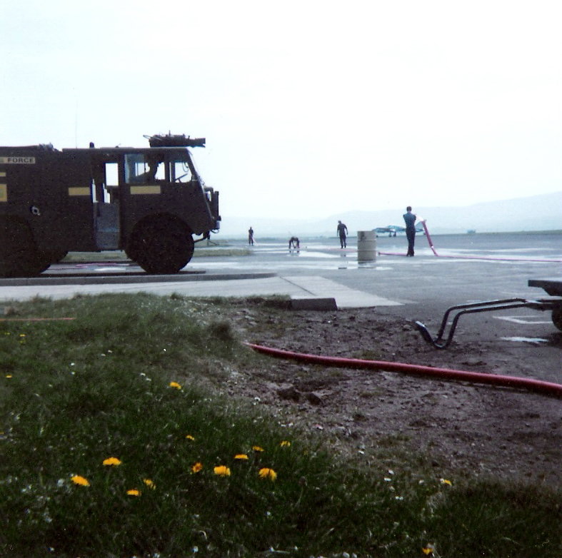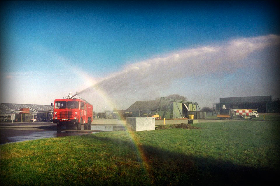 Crash 1 Landrover on auto shot outside the Fire Section at RAF Odiham.