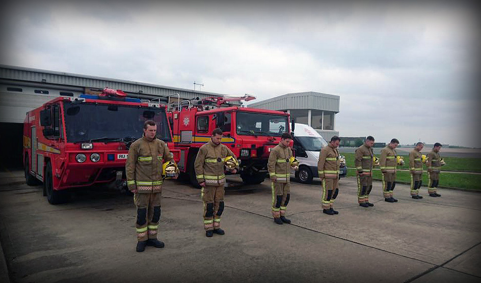 RAF fireman and their Belgian colleagues, who were the last fireman to serve in